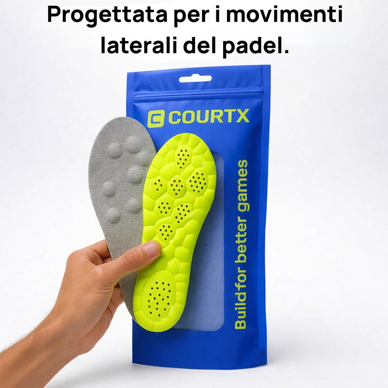 COURTX is specifically designed for the dynamic, lateral movements and rapid pivots of padel. Unlike generic insoles, our targeted support system and impact absorption are optimized for the unique stresses of your game, providing unparalleled stability and energy return where you need it most to master the court.